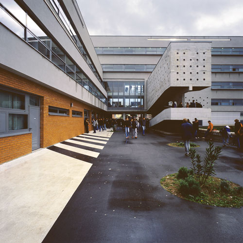 Usporedivu strategiju baze s javnim sadržajima i nadgradnje uporabili su N. Kezić i E. Šverko u projektu studentskoga doma u Splitu (2002–12). Razvedeni volumen s poroznom strukturom smještajnih jedinica natkriljuje javni prostor te zatvorene i otvorene javne prostore. Dok navedeni projekti kreiraju izdašne vanjske javne prostore, arhitekti D. Peračić i Roman Šilje projektirali su Građevinski fakultet u Osijeku (2006–16) unutar skučenoga raspoloživog prostora zadanoga urbanističkim planom, pa je fokus javne domene prebačen u interijer što je postala i osnova tipološkoga rješenja. H. Auf-Franić, → Tin Sven Franić i → Vanja Rister u Filozofskom i Učiteljskom fakultetu u Rijeci (2005–10) fokusirali su se na mrežu unutarnjih prostora kretanja integriranih s intimnim atrijima zaštićenima od bure. Projekt H. Njirića za Kampus Borongaj u Zagrebu (2010) temeljio se na studioznom pristupu klimi, prirodi i korištenju energije, te je predlagao arhitektonske tipologije u kojoj su integrirani sveučilišni sadržaji i staklenici.