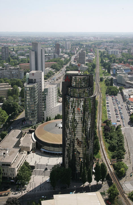 Dobar je primjer urbanističkih dvojbi u razvoju hrvatskih gradova izgradnja novih vertikala od 2000-ih u Zagrebu, a koja se razmjerno oprezno rješavala od slučaja do slučaja. Polemika o pozicioniranju vertikala otvorena je projektom M. Hržića za sklop nebodera Eurotower 1 i 2 (2002–08) na raskrižju Vukovarske i Lučićeve ulice u Zagrebu, na tzv. sveučilišnoj osi. Visina nebodera određena je usklađivanjem s visinom nebodera Zagrepčanke → Slavka Jelineka (1976).